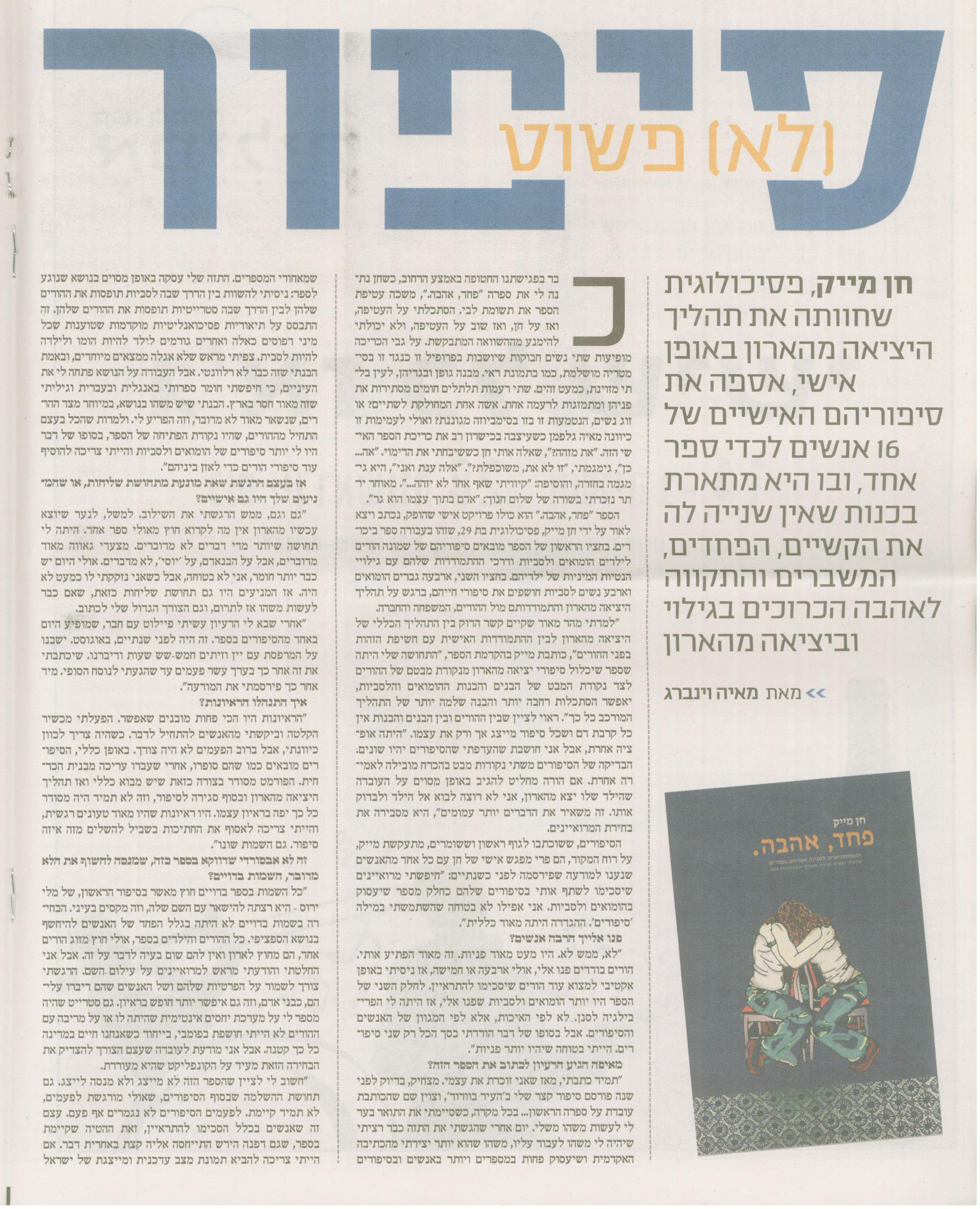פרק מהספר "פחד, אהבה" שהתפרסם בעיתון "TimeOut", ספטמבר 2009: לצפייה