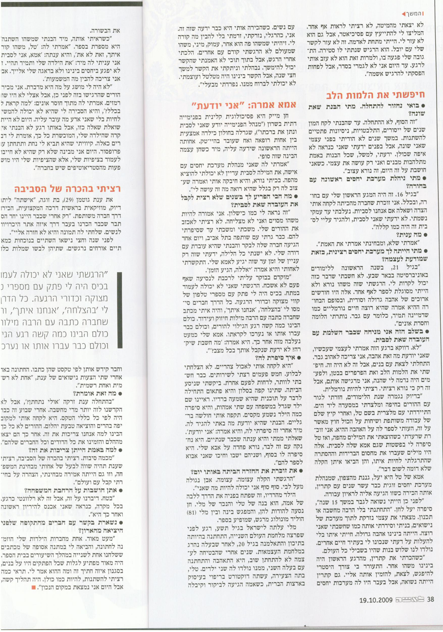 ראיון עם חן מייק בעיתון "לאישה", אוקטובר 2009: חלק א', ב', ג', ד'