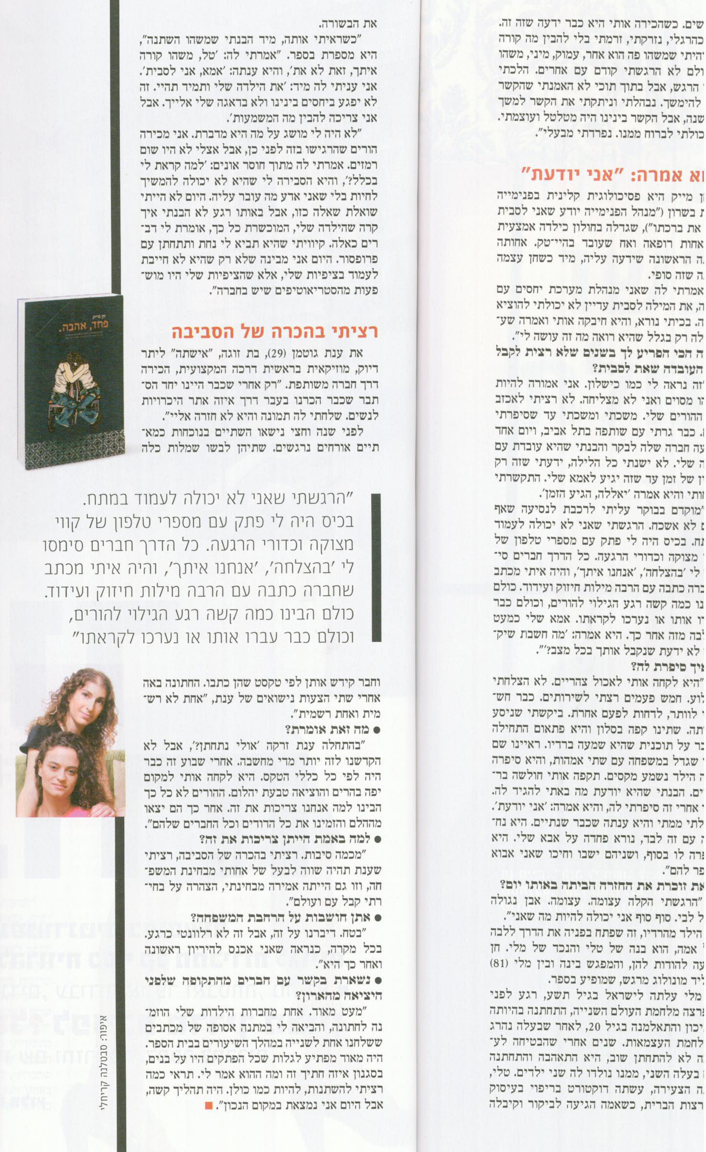 פרק מהספר "פחד, אהבה" שהתפרסם בעיתון "TimeOut", ספטמבר 2009: לצפייה